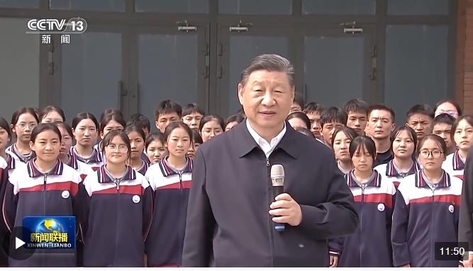 在高一(1)班教室,總書記說,要把鑄牢中華民族共同體意識作為學(xué)校思政課的一個重點,講好中國共產(chǎn)黨和中國特色社會主義的故事,講好新時代以中國式現(xiàn)代化全面推進強國建設(shè)、民族復(fù)興偉業(yè)的故事,講好中華民族共同體和民族團結(jié)進步的故事,把中華民族共同體意識從小就植入孩子們的心靈。
