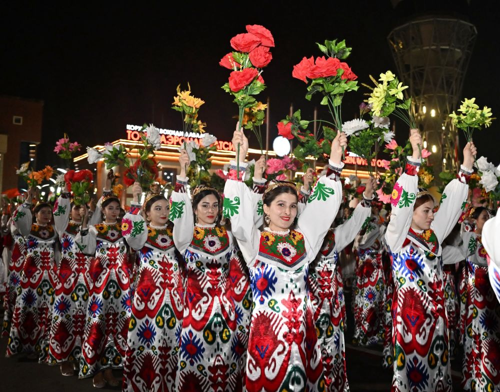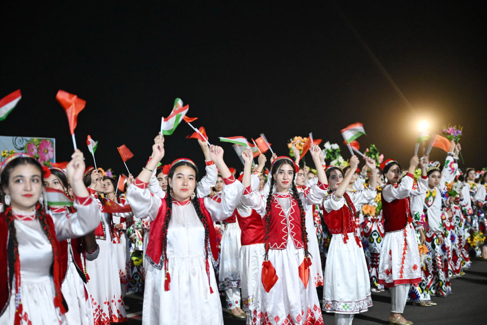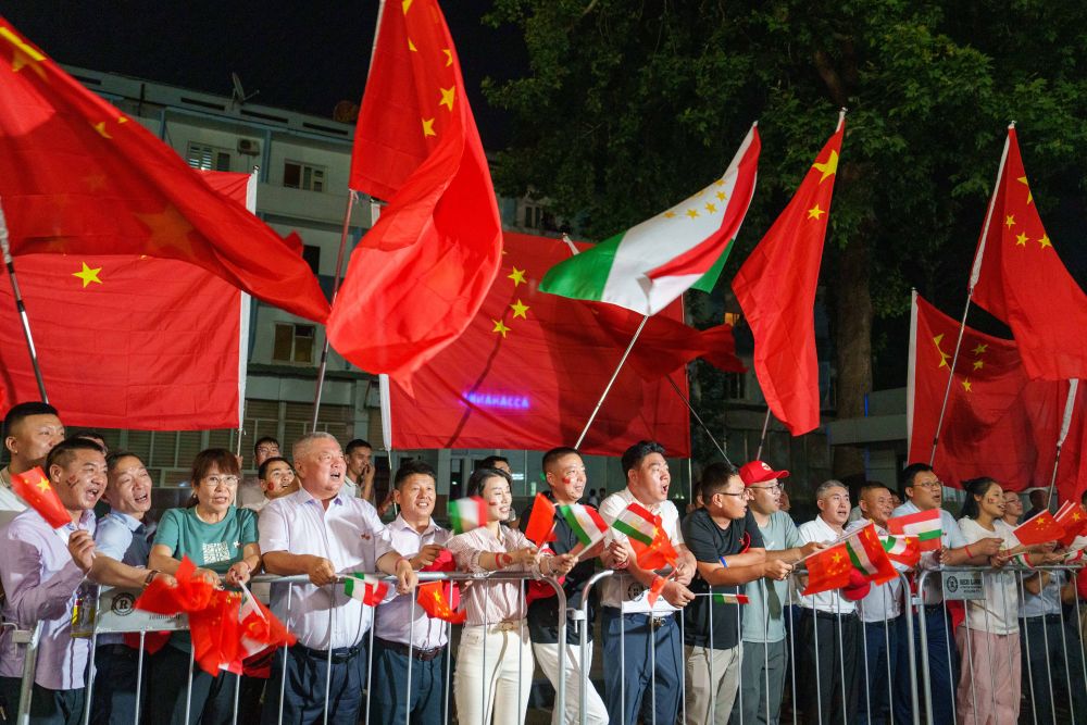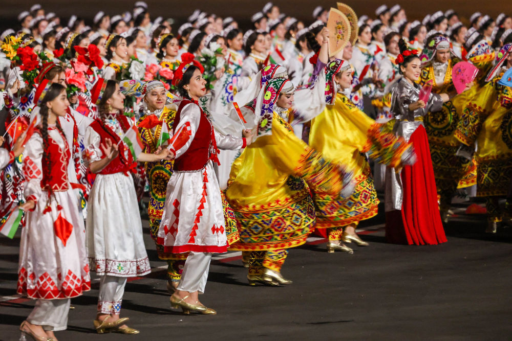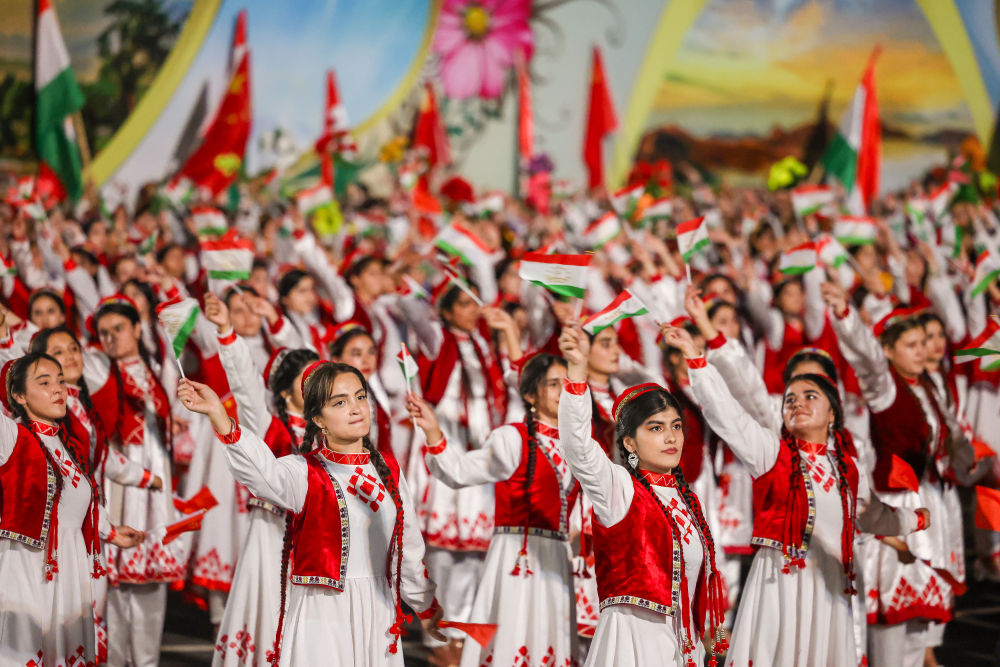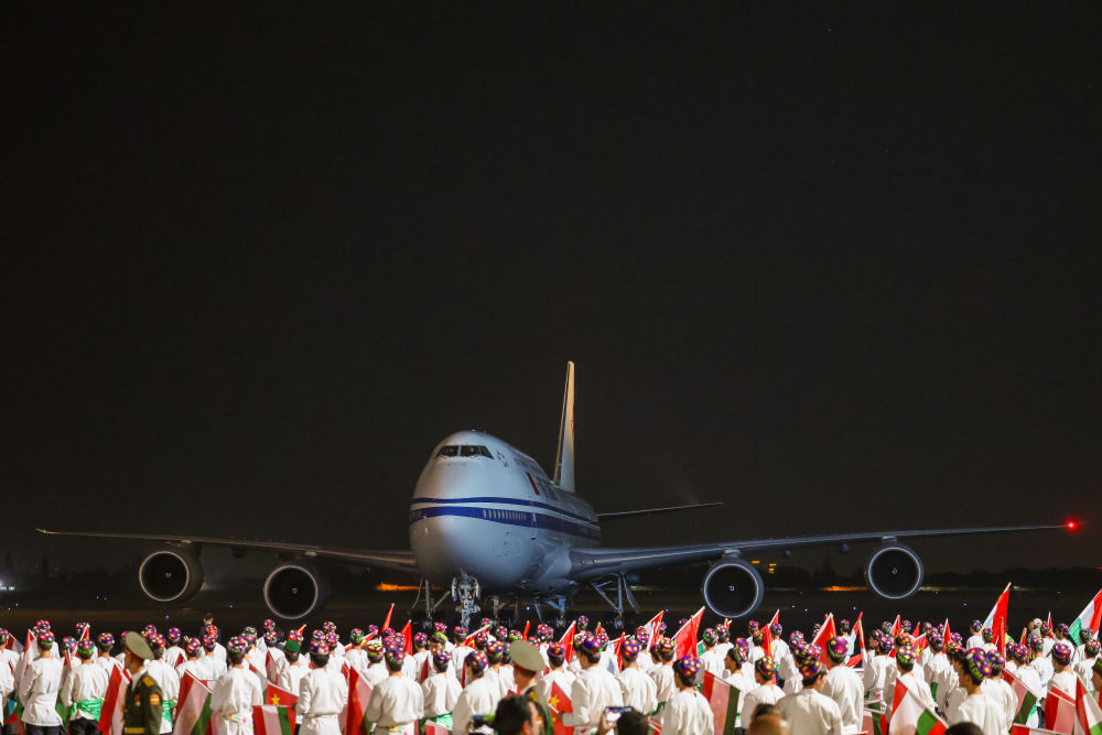 拉赫蒙在機場為習(xí)近平舉行盛大隆重的迎賓儀式。1500多名身著民族盛裝的塔吉克斯坦青年表演富有濃郁特色的中塔歌舞,揮舞中塔兩國國旗,表達對中國最尊貴客人的熱烈歡迎。