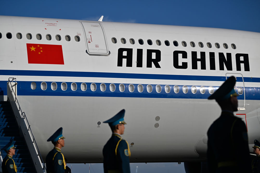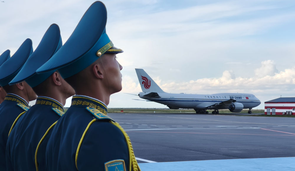 習(xí)近平專機起飛后,哈薩克斯坦三架空軍戰(zhàn)機升空護航。