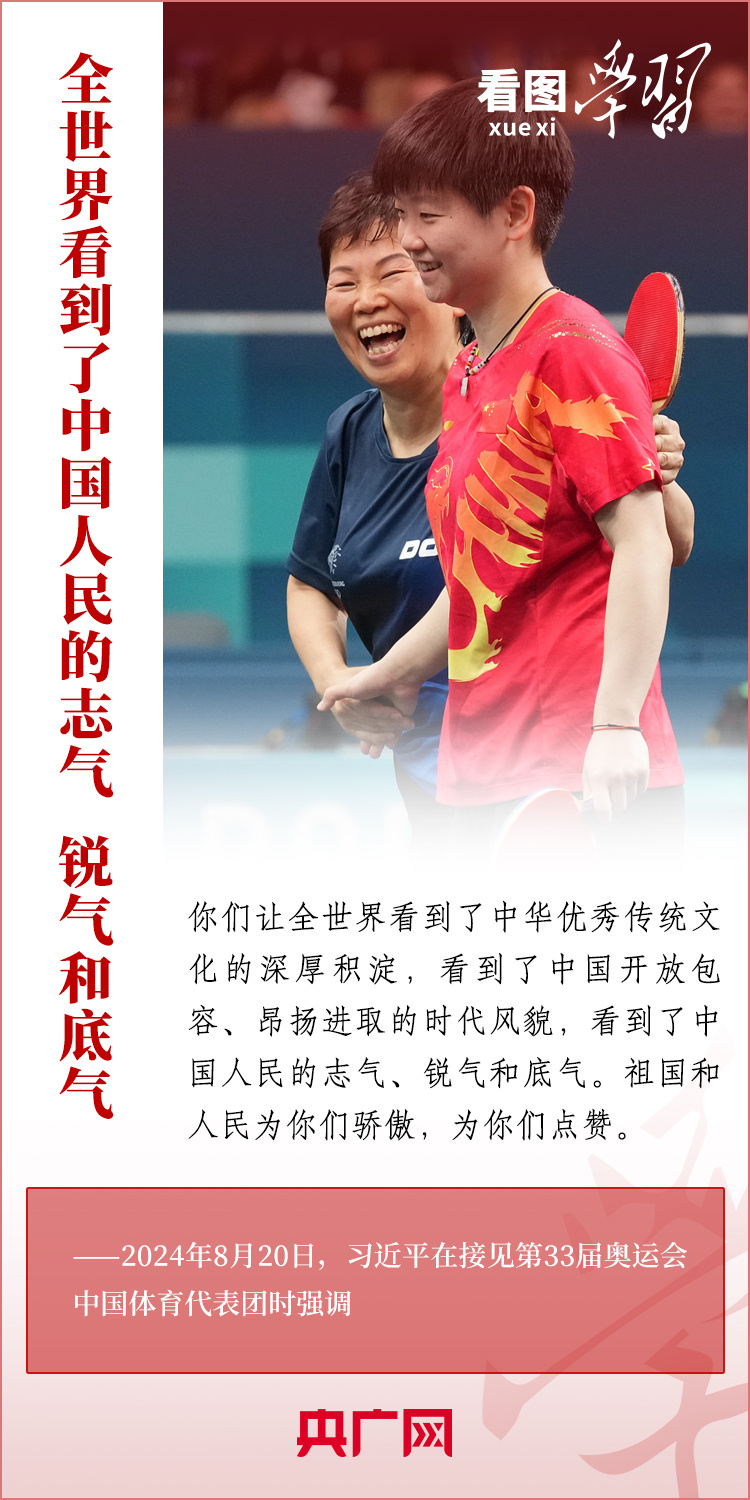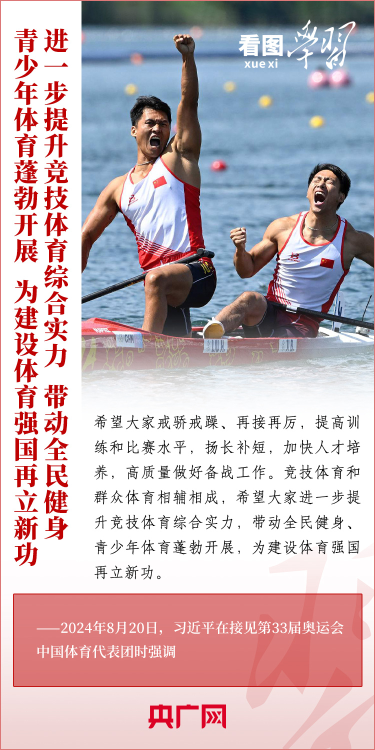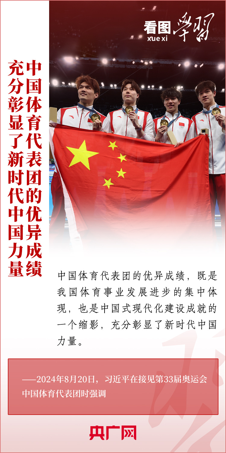 “祖國和人民為你們驕傲,為你們點贊?!?月20日,習(xí)近平總書記在人民大會堂接見第33屆奧運(yùn)會中國體育代表團(tuán)并發(fā)表重要講話。總書記高度肯定中國體育代表團(tuán)取得的優(yōu)異成績,贊揚(yáng)他們充分彰顯了新時代中國力量、生動詮釋了新時代中國精神、充分展現(xiàn)了新時代中國形象,勉勵大家戒驕戒躁、再接再厲,為建設(shè)體育強(qiáng)國再立新功。一起來學(xué)習(xí)!