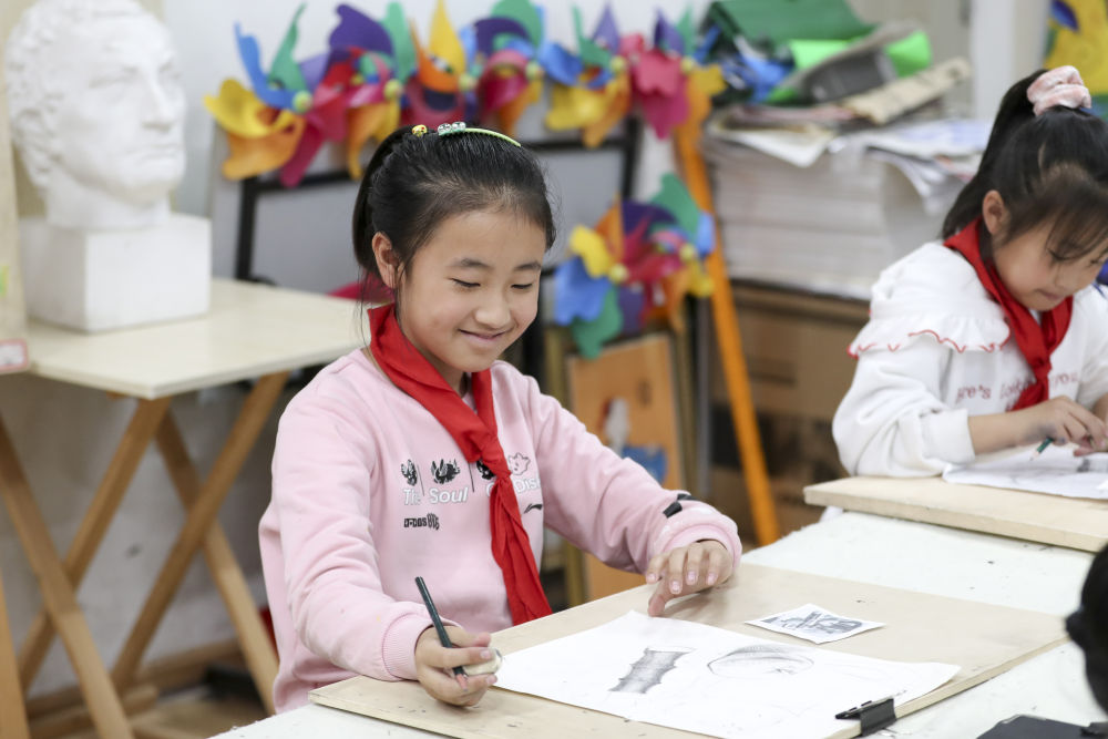 2021年10月27日,學(xué)生在黑龍江省哈爾濱市榆樹鎮(zhèn)中心校新鄉(xiāng)小學(xué)鄉(xiāng)村學(xué)校少年宮參加美術(shù)學(xué)習(xí)班。近年來,黑龍江省各地以鄉(xiāng)村小學(xué)為基礎(chǔ),大力發(fā)展鄉(xiāng)村學(xué)校少年宮,開設(shè)德育、文藝、體育、科普、手工等多種課外活動,滿足學(xué)生需求,培養(yǎng)孩子們的興趣愛好和特長。
