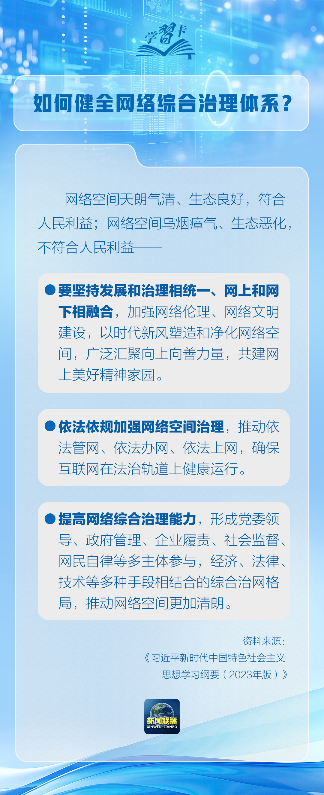 習(xí)近平總書記在《關(guān)于〈中共中央關(guān)于進(jìn)一步全面深化改革、推進(jìn)中國式現(xiàn)代化的決定〉的說明》中強(qiáng)調(diào)要健全網(wǎng)絡(luò)綜合治理體系。