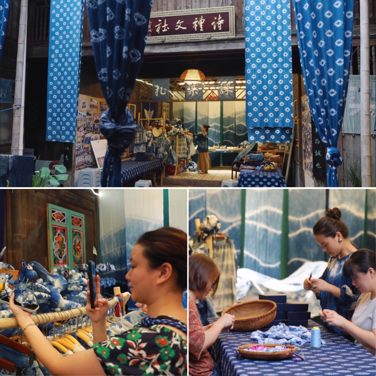 盡管她把家里的三姑六婆都找來幫忙,印染手作依然供不應(yīng)求。等不及的游客們甚至自己動手,客串起了“伙計”。