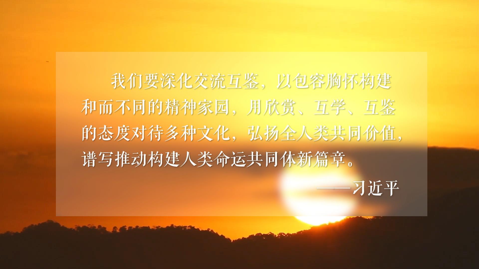 我們要深化交流互鑒,以包容胸懷構(gòu)建和而不同的精神家園,用欣賞、互學(xué)、互鑒的態(tài)度對待多種文化,弘揚全人類共同價值,譜寫推動構(gòu)建人類命運共同體新篇章。