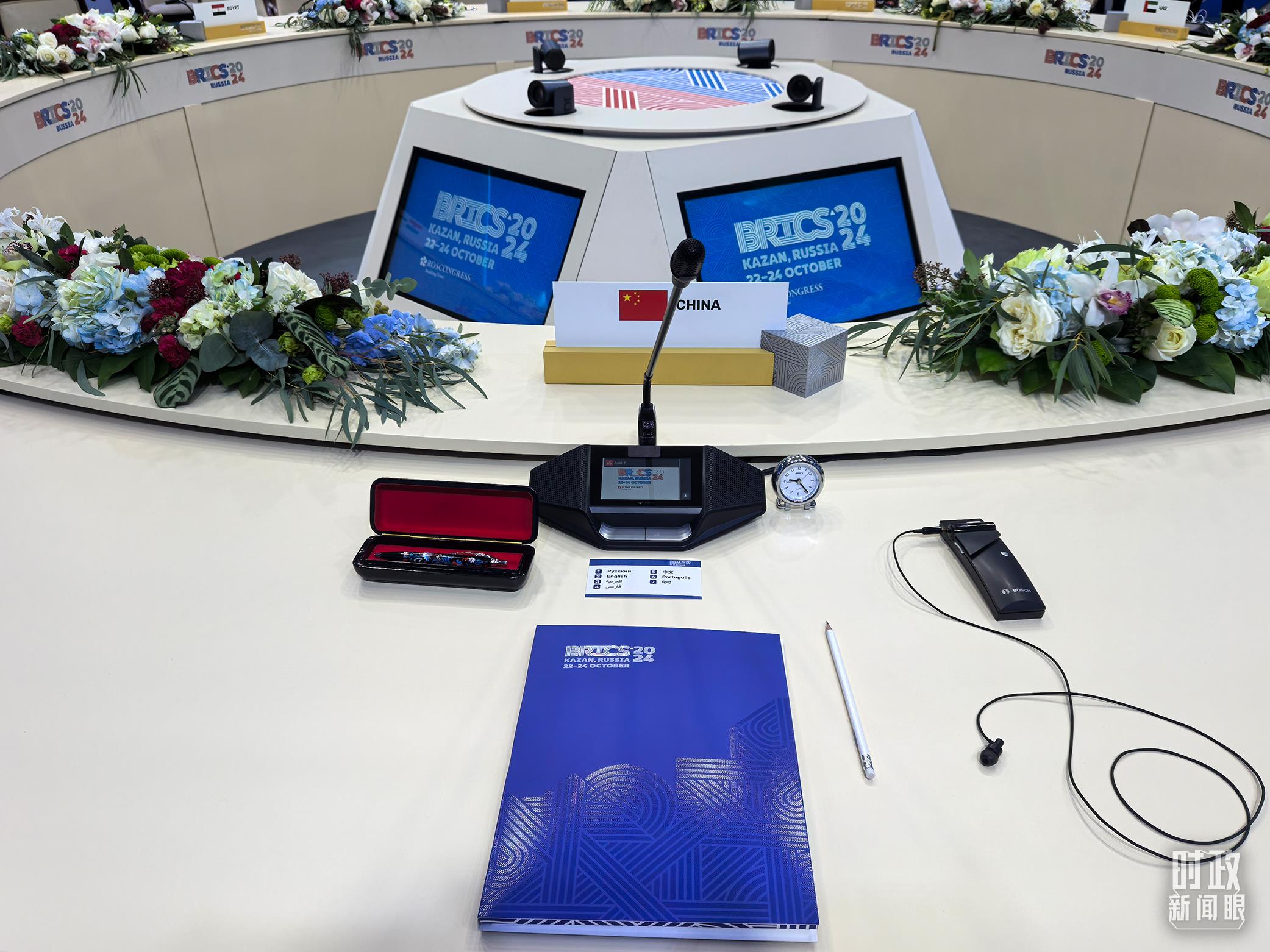 金磚國家領導人小范圍會議現(xiàn)場的會議桌。(總臺央視記者程鋮拍攝)