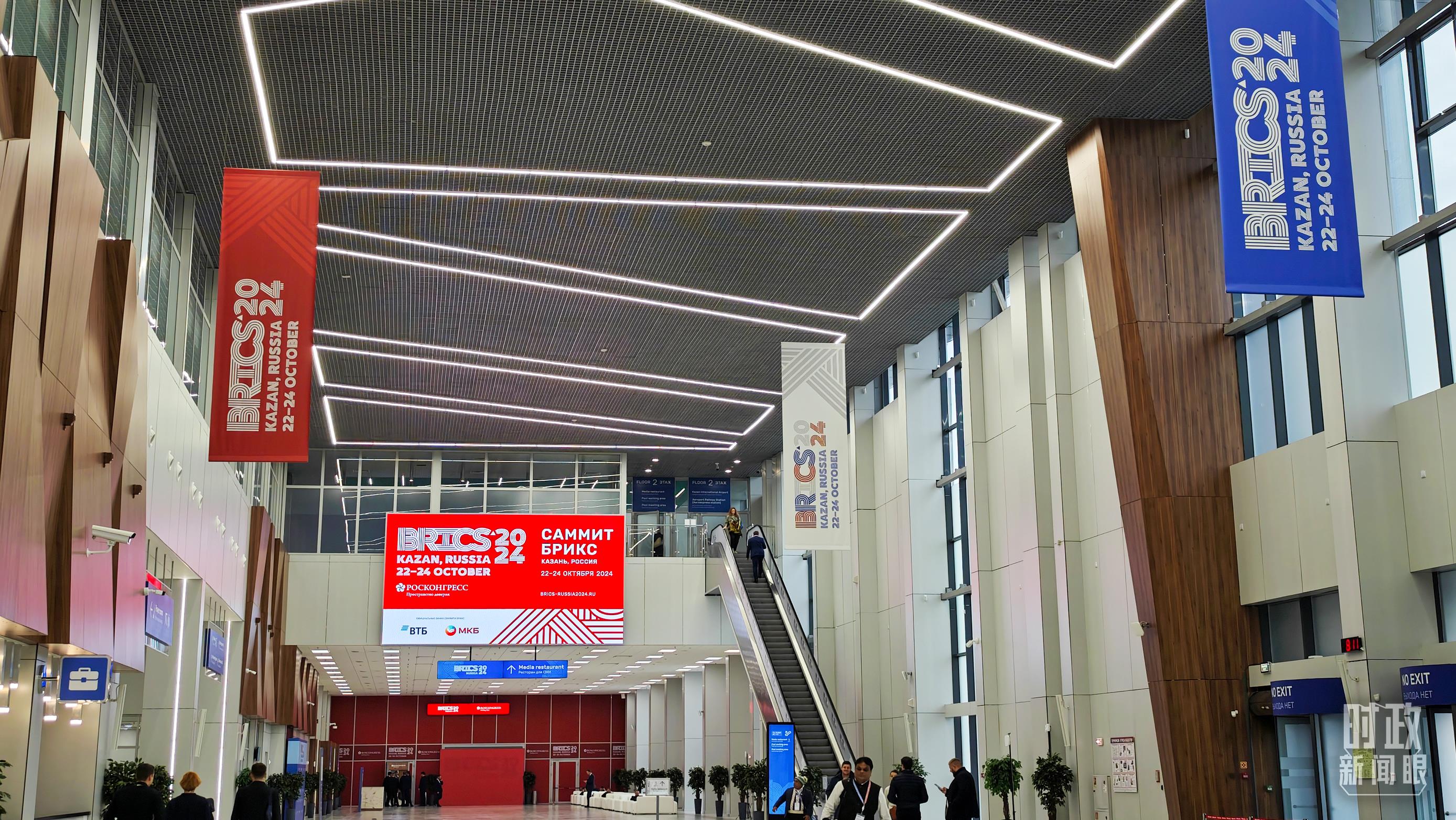 喀山會展中心內(nèi)的峰會標志。(總臺央視記者鄂介甫拍攝)