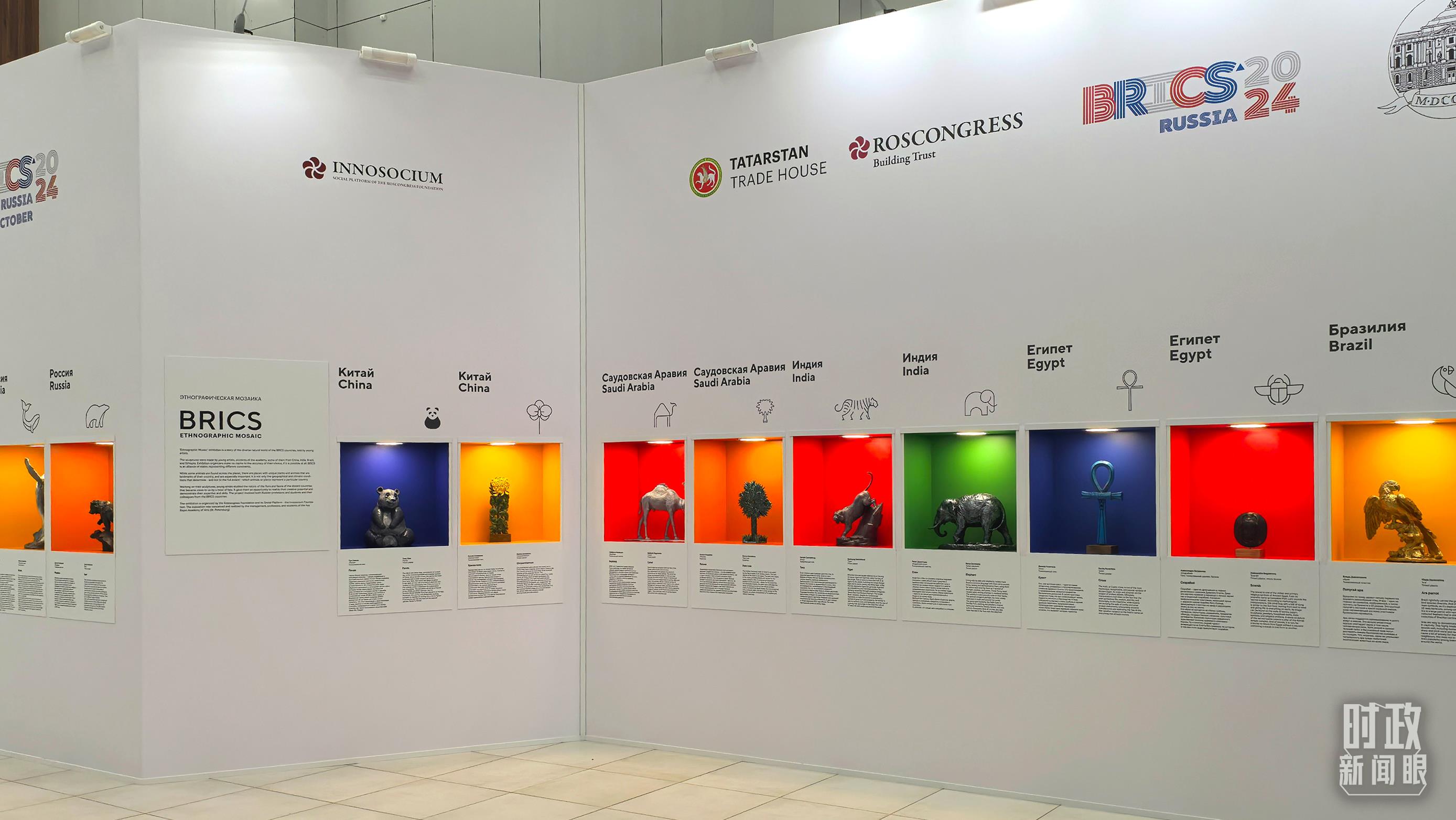 喀山會展中心內(nèi)展示的金磚國家工藝品。(總臺央廣記者潘毅拍攝)