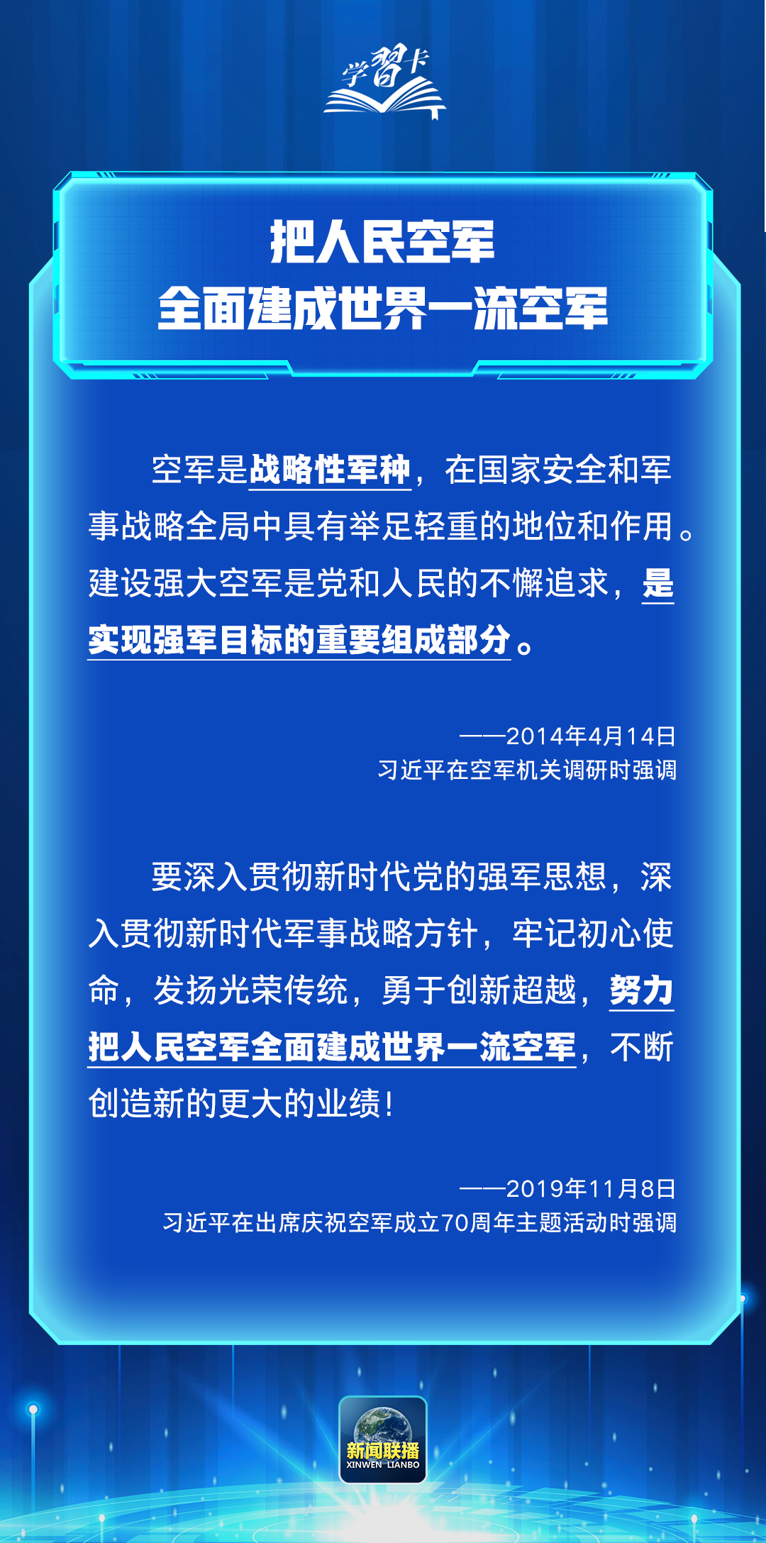 2024年11月11日,是中國人民解放軍空軍成立75周年紀念日。在黨的堅強領(lǐng)導下,一代代空軍官兵胸懷凌云壯志,搏擊萬里長空,推動空軍建設(shè)取得舉世矚目的成就,為維護國家主權(quán)、安全、發(fā)展利益建立了不朽功勛。如何把人民空軍全面建成世界一流空軍?一起學習↓
