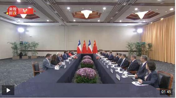 當(dāng)?shù)貢r間11月15日,國家主席習(xí)近平在利馬出席亞太經(jīng)合組織領(lǐng)導(dǎo)人非正式會議期間會見智利總統(tǒng)博里奇。