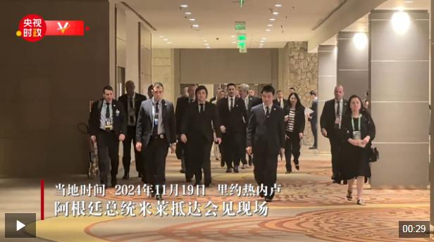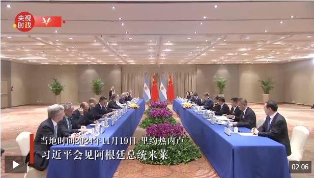 當?shù)貢r間11月19日,國家主席習近平在里約熱內盧出席二十國集團領導人峰會期間會見阿根廷總統(tǒng)米萊。