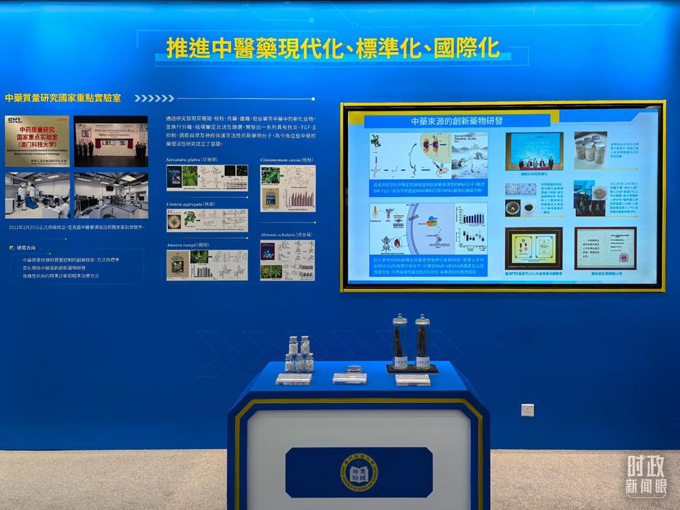△澳門科技大學(xué)中藥質(zhì)量研究國家重點(diǎn)實(shí)驗(yàn)室、月球與行星科學(xué)國家重點(diǎn)實(shí)驗(yàn)室成果展示。(總臺央視記者陸泓宇拍攝)