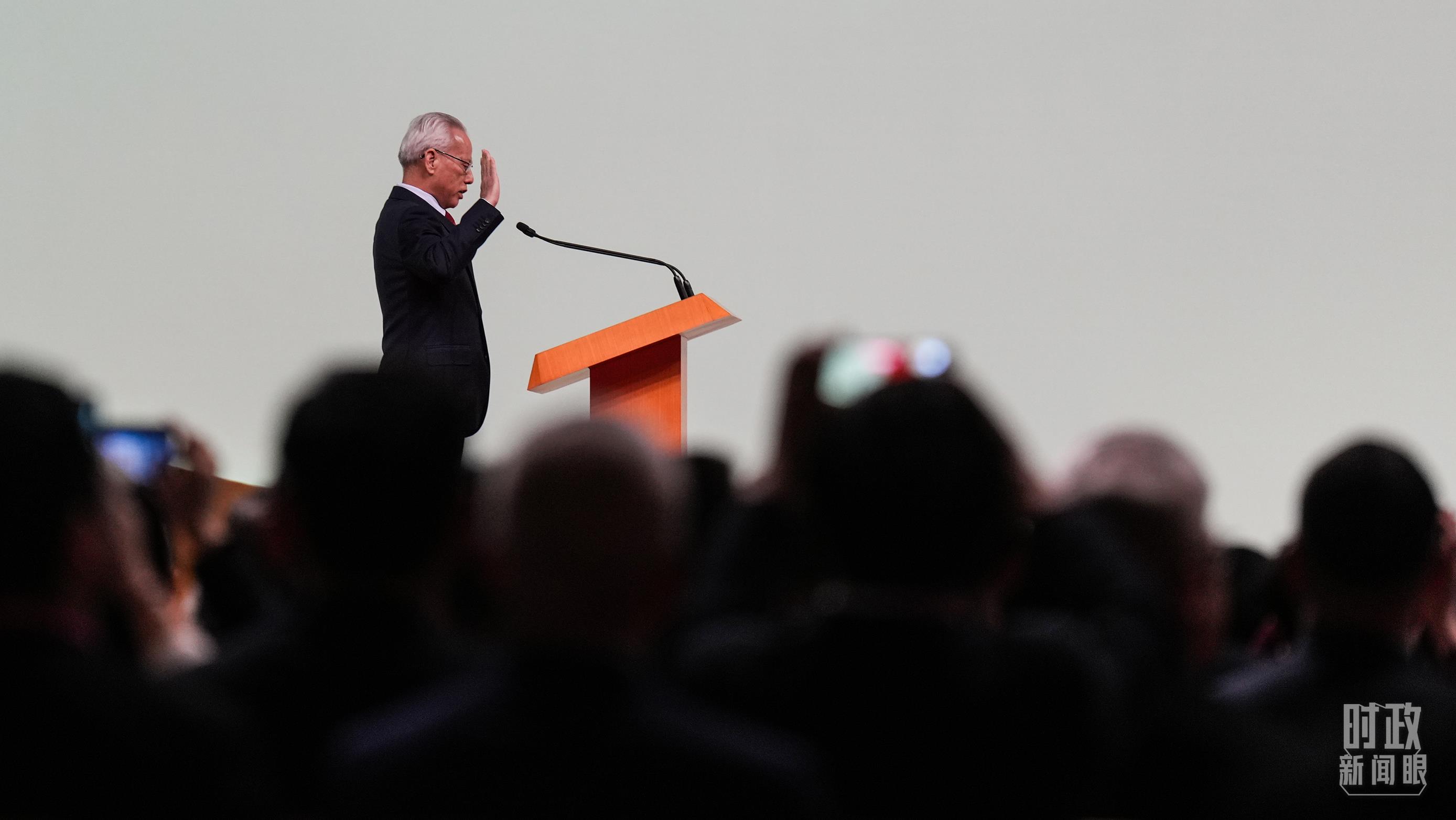 澳門特區(qū)第六任行政長官岑浩輝莊嚴(yán)宣誓。(總臺記者李晉拍攝)