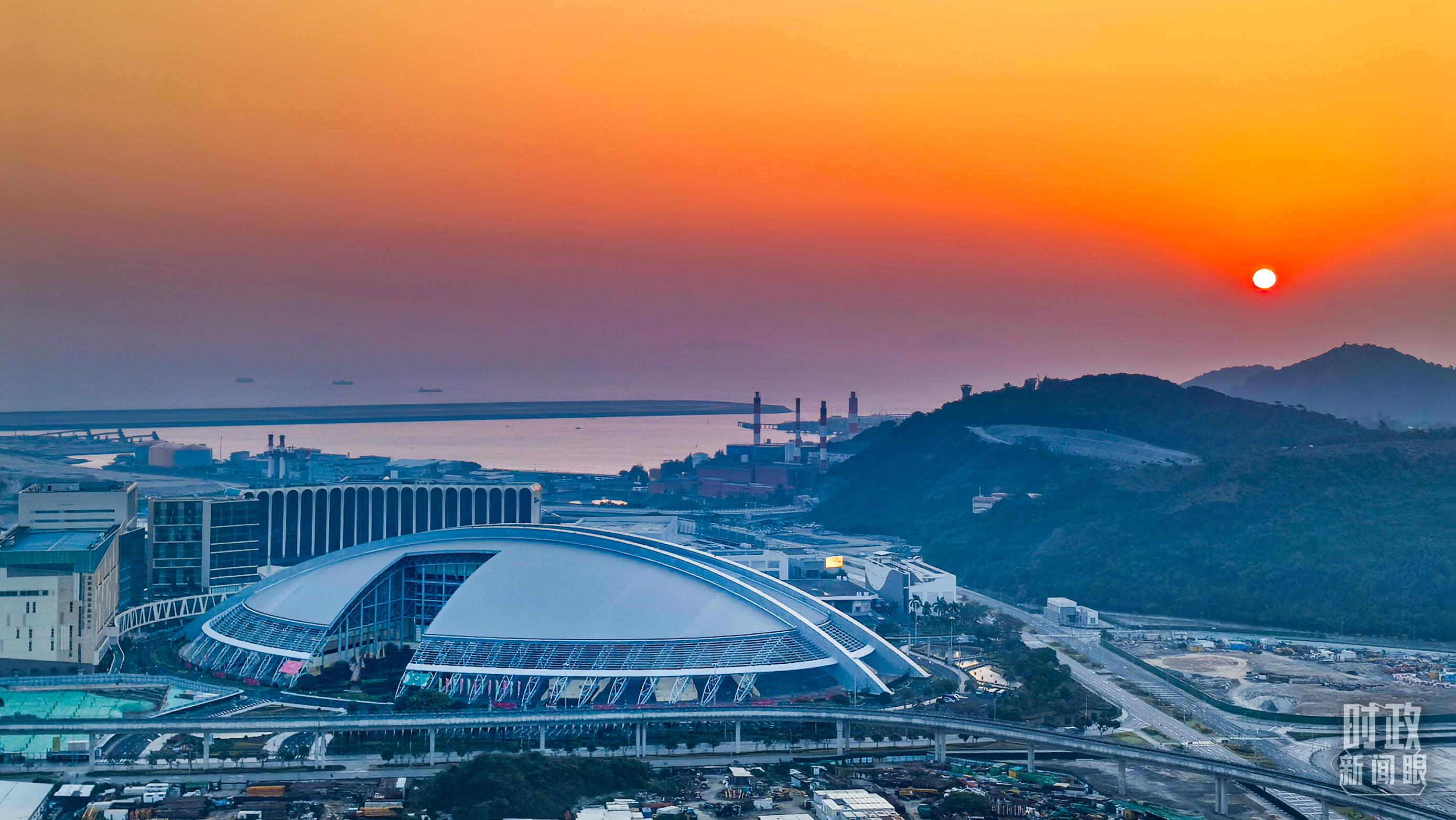 12月20日,朝霞映襯下的澳門東亞運(yùn)動會體育館。(總臺央視記者張垚拍攝)