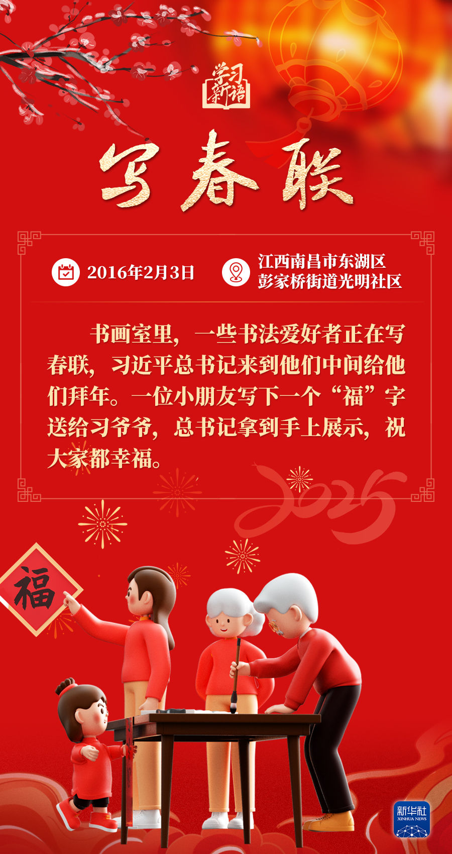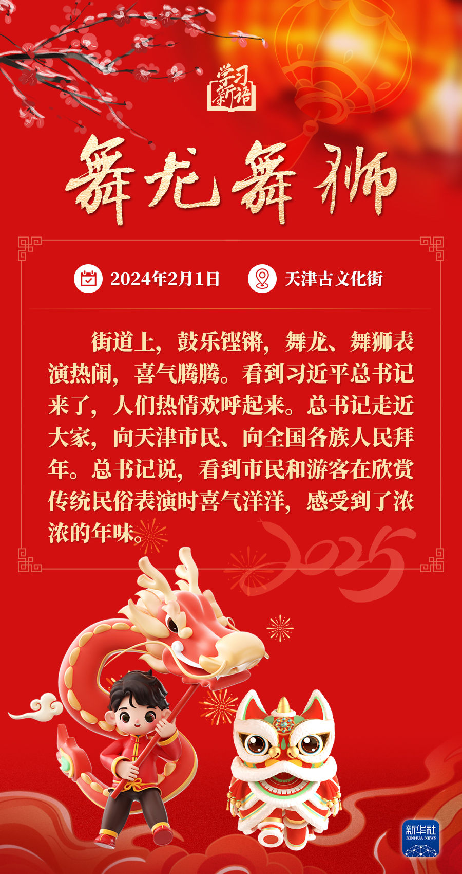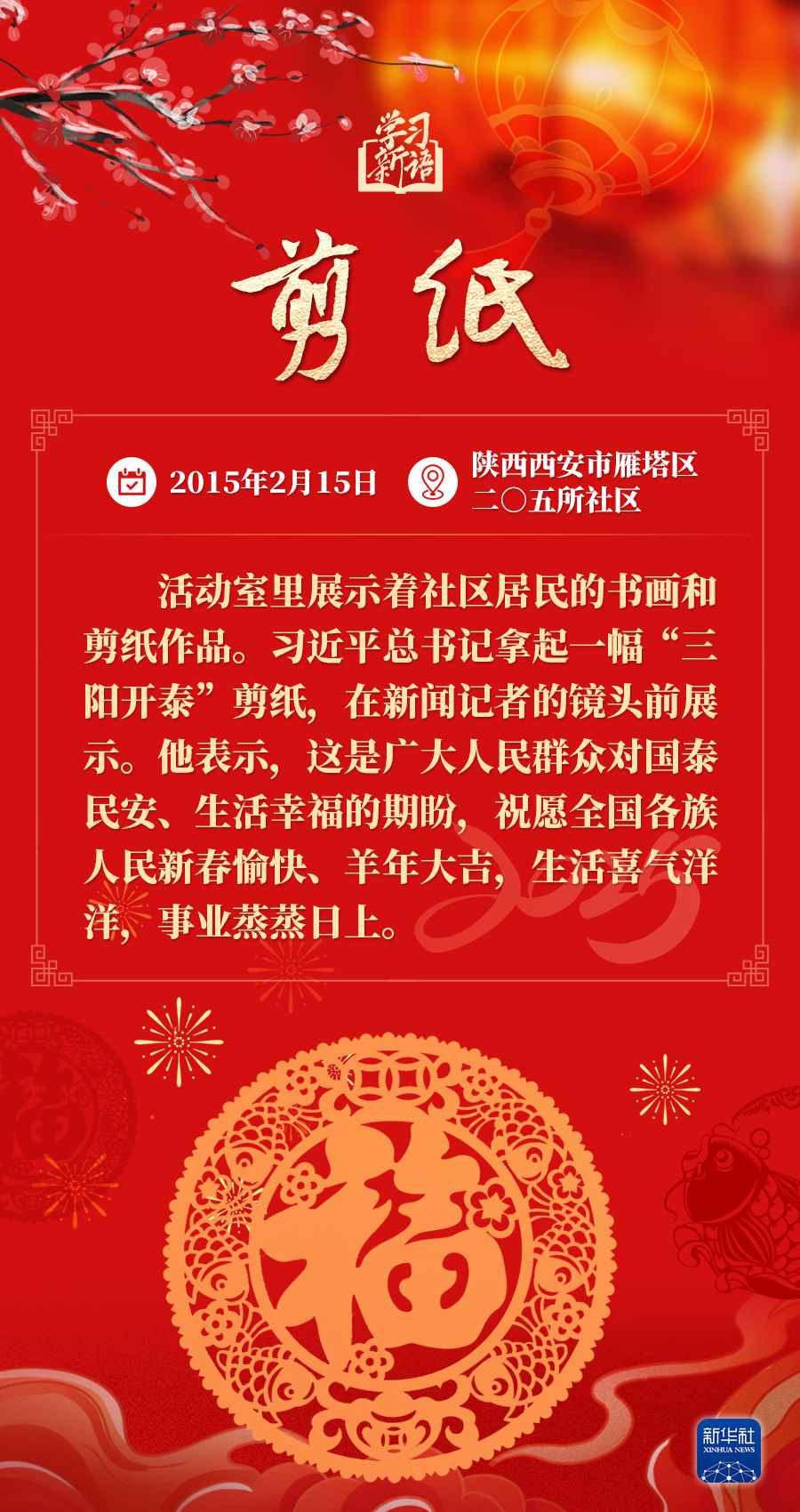 春節(jié)是中華民族的傳統(tǒng)節(jié)日。每當春節(jié)來臨之際,習近平總書記都會走到群眾之中,送祝福、貼“?!弊?、賞民俗……和大家一起感受豐富多彩的年俗文化。