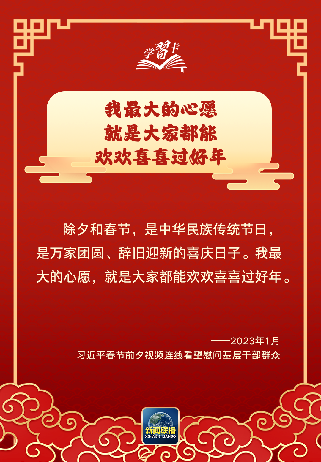 習(xí)近平總書記曾說:“我最大的心愿,就是大家都能歡歡喜喜過好年?!痹谶@辭舊迎新、萬家團(tuán)圓之際,讓我們聆聽總書記的暖心話語,一起學(xué)習(xí)↓