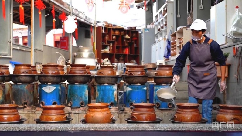 制作盬子雞的盬子,來自當(dāng)?shù)厥〖壏俏镔|(zhì)文化遺產(chǎn)代表性傳承人母先才的陶藝館。2014年,在政府的幫扶下,母先才依托傳統(tǒng)技藝開設(shè)了陶藝館?,F(xiàn)在,他不僅把原來的土窯改成了更加環(huán)保的電窯,還把工坊變?yōu)榧铺?、研學(xué)、餐飲為一體的陶藝館,受到游客歡迎。