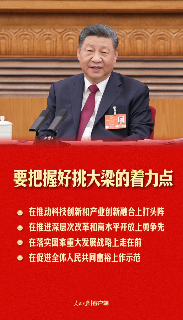 經(jīng)濟(jì)大省怎么挑大梁?這次參加江蘇代表團(tuán)審議,習(xí)近平總書記提出要把握好挑大梁的4個著力點(diǎn):在推動科技創(chuàng)新和產(chǎn)業(yè)創(chuàng)新融合上打頭陣,在推進(jìn)深層次改革和高水平開放上勇爭先,在落實國家重大發(fā)展戰(zhàn)略上走在前,在促進(jìn)全體人民共同富裕上作示范。