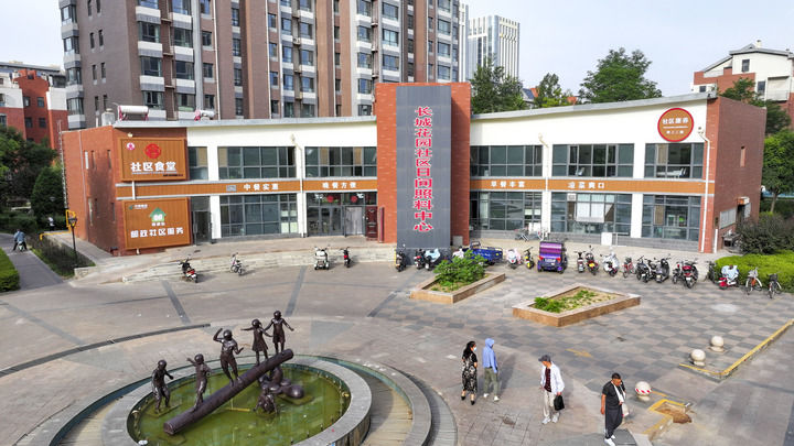 這是2024年6月20日拍攝的寧夏銀川市金鳳區(qū)長城花園社區(qū)日間照料中心(無人機(jī)照片)。