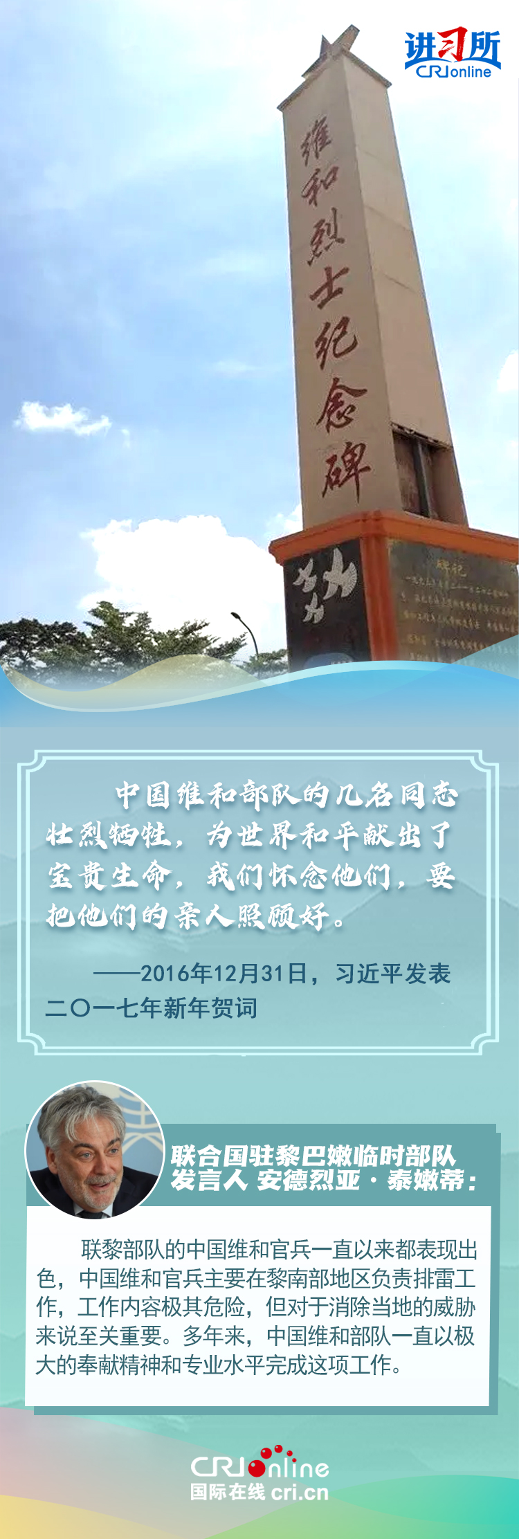 中共十八大以來,習(xí)近平總書記致敬英雄的足跡遍布中國(guó)及境外多個(gè)國(guó)家和地區(qū),從東風(fēng)革命烈士陵園到雷鋒紀(jì)念館,從援坦中國(guó)專家公墓到中朝友誼塔……一次次敬獻(xiàn)花籃、深情凝視紀(jì)念碑銘,習(xí)近平以崇敬之情表達(dá)對(duì)英雄先烈的追思:“對(duì)一切為國(guó)家、為民族、為和平付出寶貴生命的人們,不管時(shí)代怎樣變化,我們都要永遠(yuǎn)銘記他們的犧牲和奉獻(xiàn)?!薄袄硐胫獠粶?,信念之光不滅。我們一定要銘記烈士們的遺愿,永志不忘他們?yōu)橹餮獱奚膫ゴ罄硐??!?/p>
