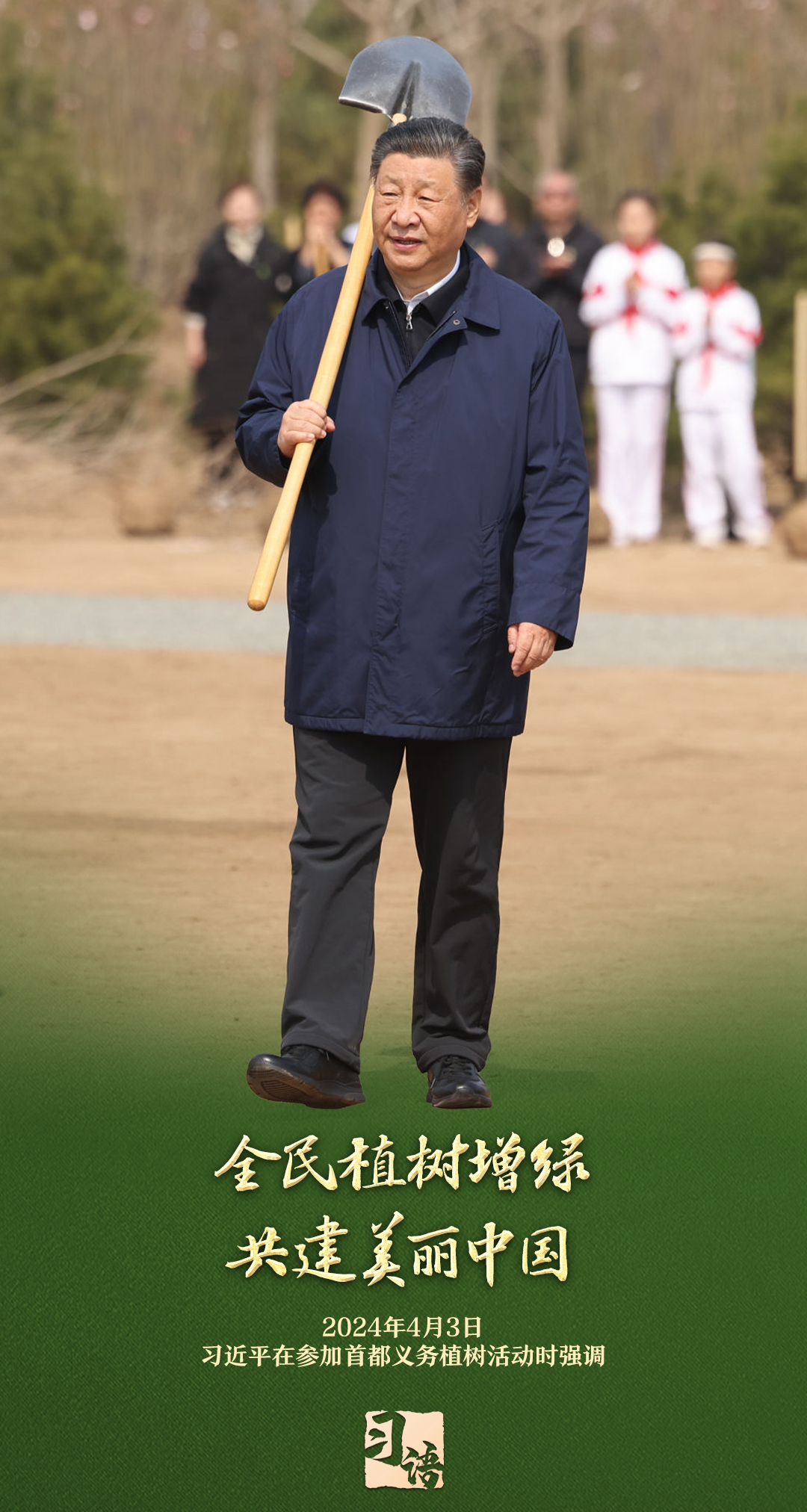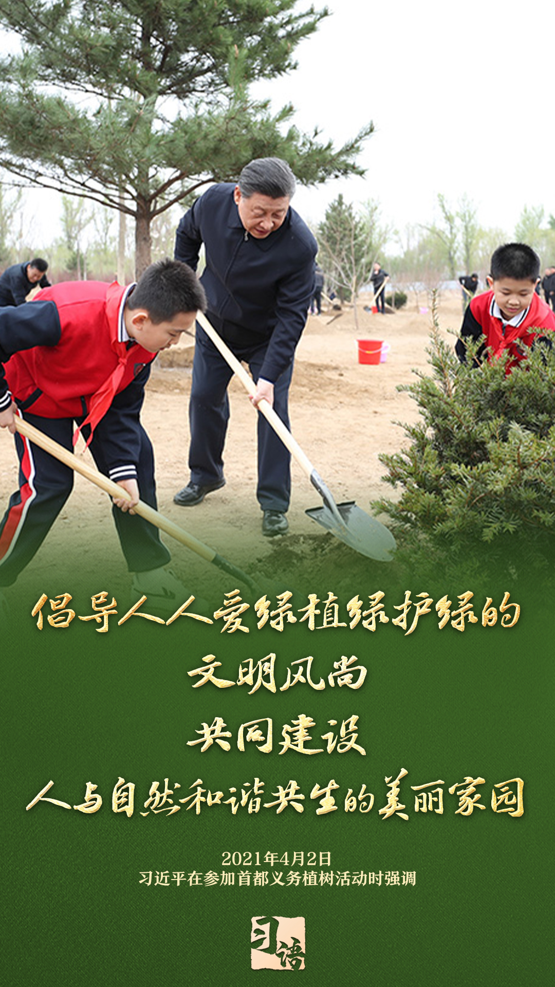 “植樹造林是一件很有意義的事情,是一項功在當代、利在千秋的崇高事業(yè),要一以貫之、持續(xù)做下去?!弊?013年以來的13個春天里,無論晴雨,習近平總書記都會拿起鐵鍬,與干部群眾一起參加首都義務植樹活動。鏟土造坑、培土圍堰、提水澆灌,總書記身體力行種下綠色的希望,對擴綠興綠護綠、建設美麗中國提出明確要求。一起學習。