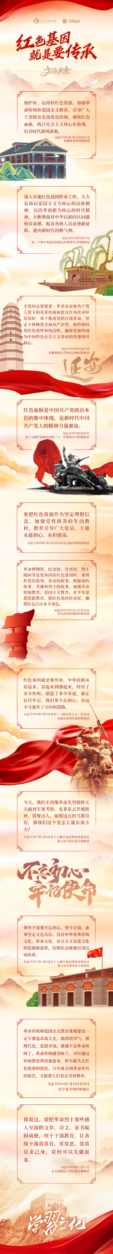 習(xí)近平總書記高度重視紅色基因傳承,發(fā)表了一系列重要講話,引導(dǎo)我們賡續(xù)紅色血脈,激發(fā)愛(ài)國(guó)熱情,振奮民族精神。我們一起學(xué)習(xí)。