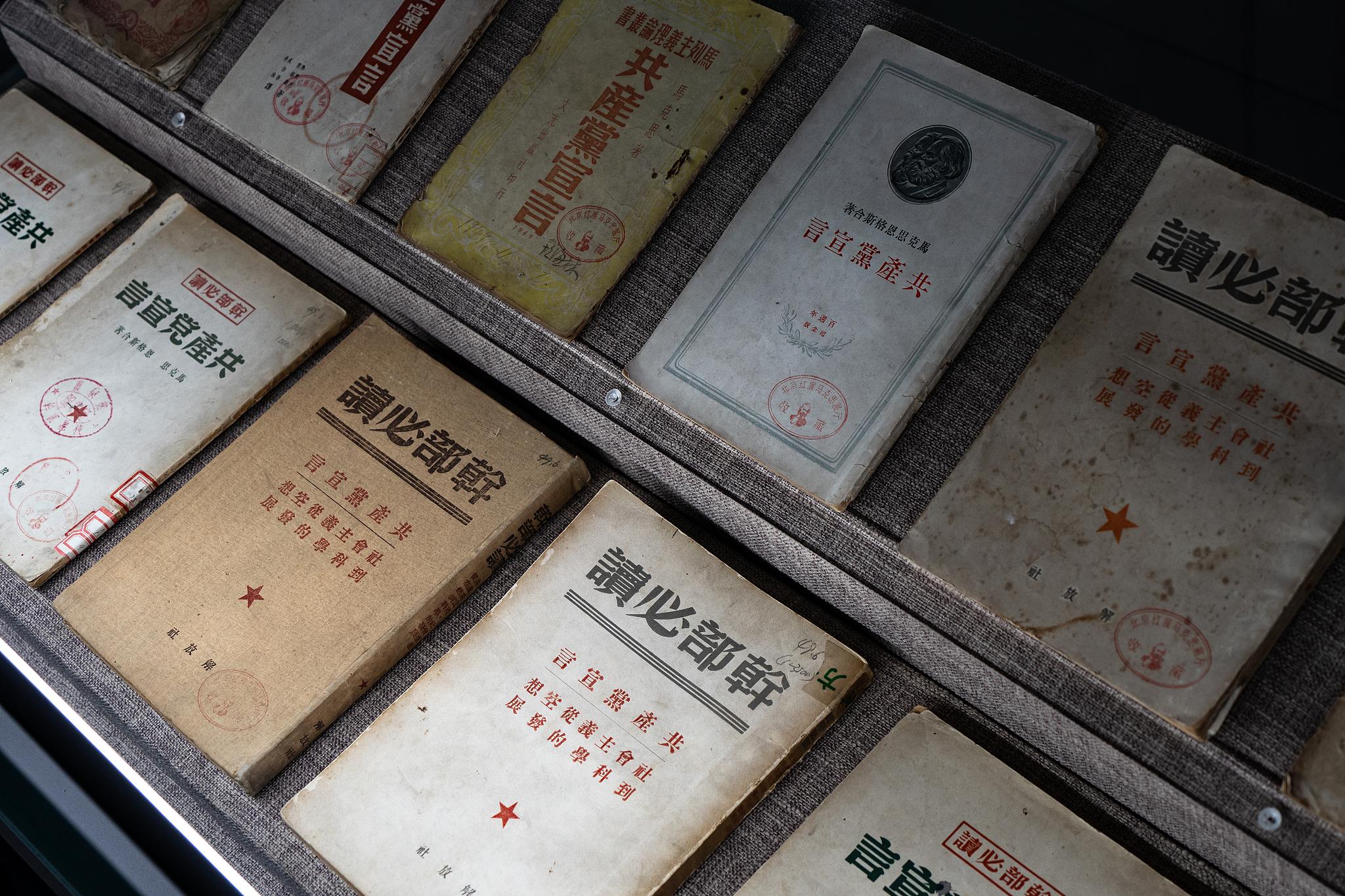 △中共一大會(huì)址紀(jì)念館館藏的各種版本的《共產(chǎn)黨宣言》