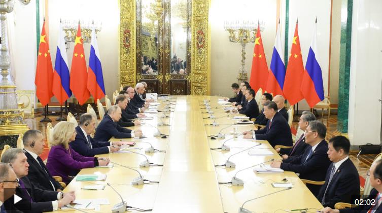 當(dāng)?shù)貢r(shí)間5月8日上午,俄羅斯總統(tǒng)普京同中國國家主席習(xí)近平在莫斯科克里姆林宮舉行會(huì)談。