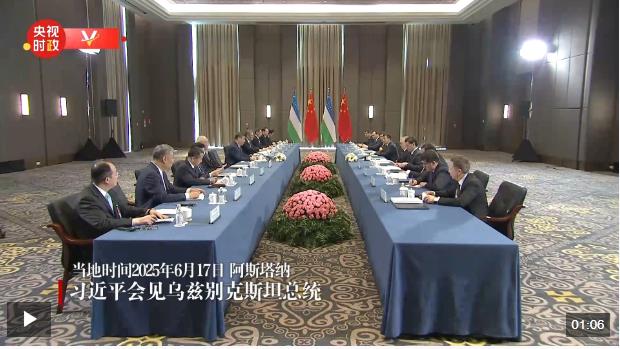 當(dāng)?shù)貢r間6月17日上午,國家主席習(xí)近平在阿斯塔納出席第二屆中國-中亞峰會期間會見烏茲別克斯坦總統(tǒng)米爾濟約耶夫。