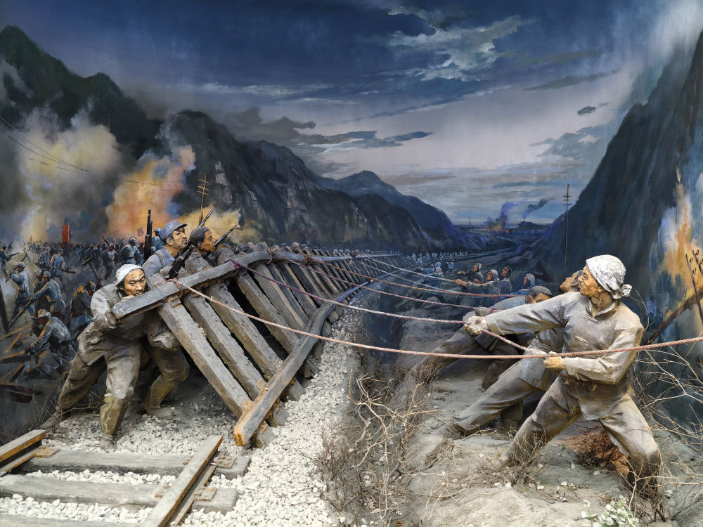 這是八路軍和民兵破襲正太鐵路(中國照片檔案館館藏)。
