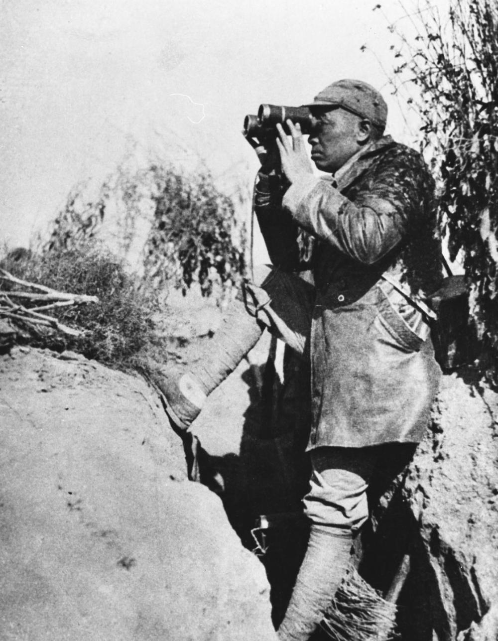 百團(tuán)大戰(zhàn),是抗日戰(zhàn)爭中八路軍在華北地區(qū)發(fā)動(dòng)的一次規(guī)模最大、持續(xù)時(shí)間最長的進(jìn)攻戰(zhàn)役,先后有105個(gè)團(tuán)約20余萬人參加,僅前3個(gè)半月,就作戰(zhàn)1824次,斃傷日、偽軍2.58萬人,俘虜1.8萬余人。這是彭德懷身處前線指揮百團(tuán)大戰(zhàn)(中國照片檔案館館藏)。