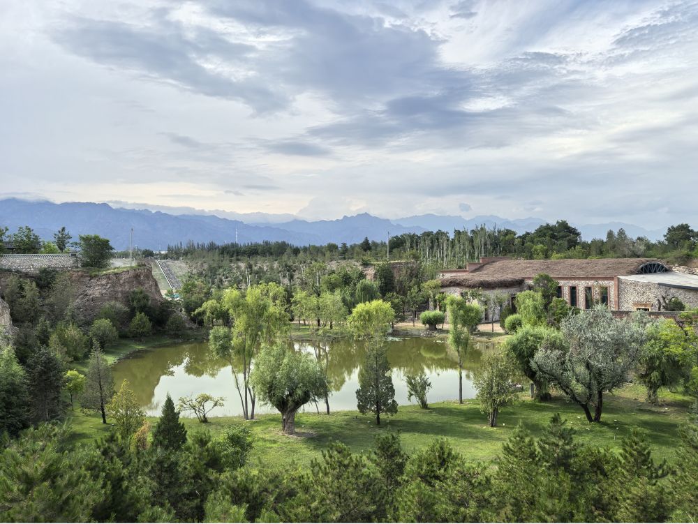 寧夏銀川市西夏區(qū)鎮(zhèn)北堡鎮(zhèn)源石酒莊經(jīng)過(guò)修復(fù)的廢棄礦坑,如今滿目新綠(2025年7月8日攝)。新華社記者 馬麗娟 攝