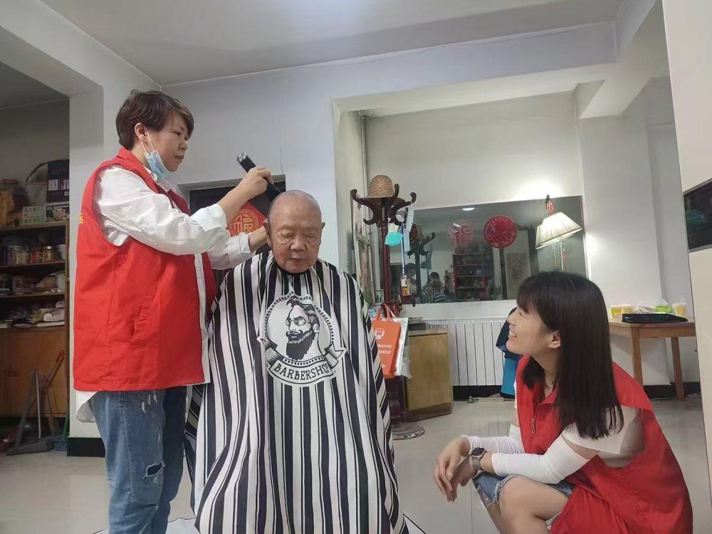 陜西西安碑林區(qū)黃雁社區(qū)的工作人員和志愿者上門為留守老人提供剪發(fā)服務。