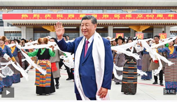 中共中央總書記、國(guó)家主席、中央軍委主席習(xí)近平率中央代表團(tuán)20日中午乘專機(jī)抵達(dá)拉薩,出席西藏自治區(qū)成立60周年慶?;顒?dòng)。習(xí)近平等在機(jī)場(chǎng)和拉薩市區(qū)受到西藏各族群眾的熱烈歡迎。中共中央政治局常委、全國(guó)政協(xié)主席、中央代表團(tuán)團(tuán)長(zhǎng)王滬寧,中共中央政治局常委、中央辦公廳主任蔡奇等同機(jī)抵達(dá)。