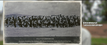 1942年日軍截斷滇緬公路后,美國空軍開辟“駝峰航線”,為中國提供軍用民用物資,為此迫切需要在短時間內(nèi)修建大量的機(jī)場。為了配合飛虎隊作戰(zhàn),中國人民在沒有重型機(jī)械設(shè)備的情況下,用汗水和鮮血筑成了一條條跑道。