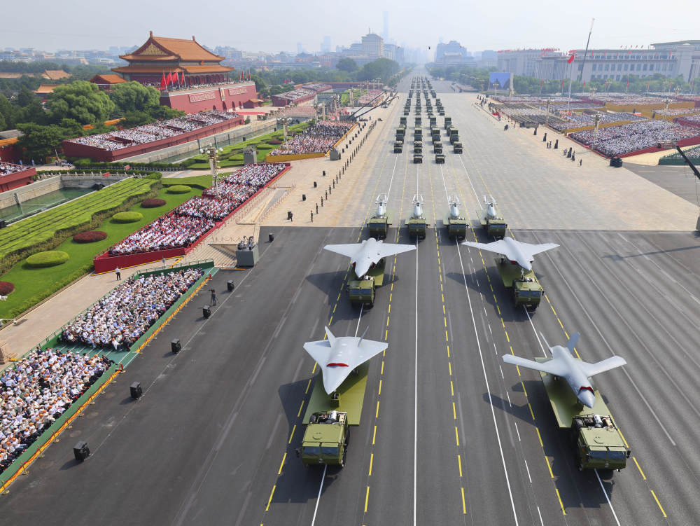 2025年9月3日,紀念中國人民抗日戰(zhàn)爭暨世界反法西斯戰(zhàn)爭勝利80周年大會在北京隆重舉行。這是裝備方隊接受檢閱。新華社記者 劉續(xù) 攝