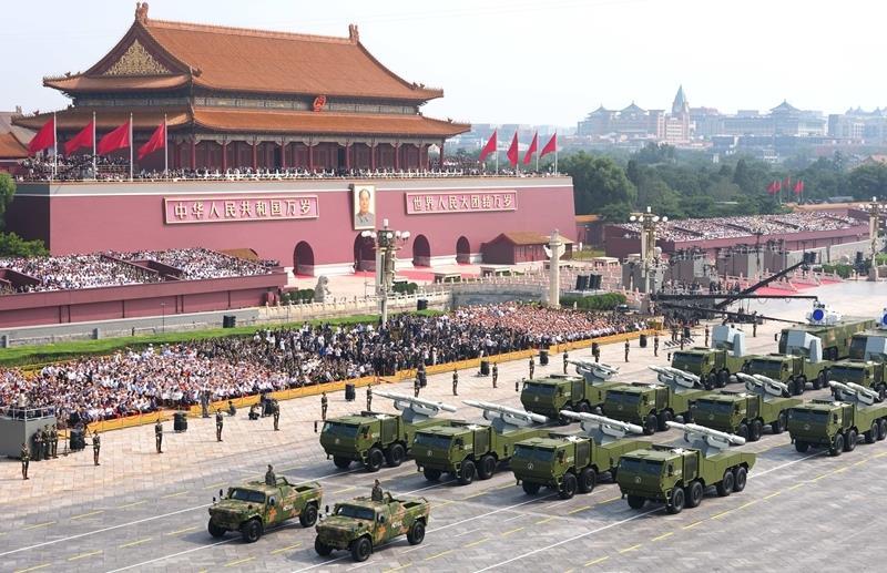 2025年9月3日,紀(jì)念中國(guó)人民抗日戰(zhàn)爭(zhēng)暨世界反法西斯戰(zhàn)爭(zhēng)勝利80周年大會(huì)在北京隆重舉行。這是艦載防空武器方隊(duì)接受檢閱。
