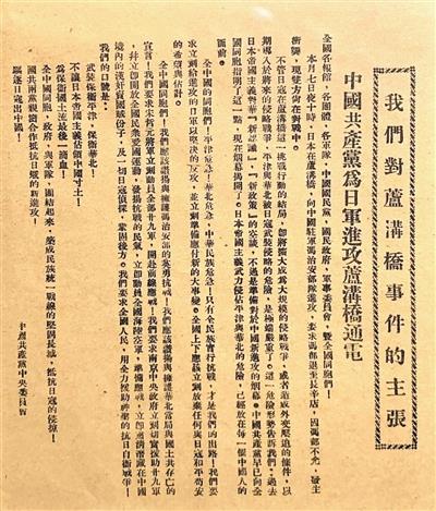 《中國(guó)共產(chǎn)黨為日軍進(jìn)攻盧溝橋通電》