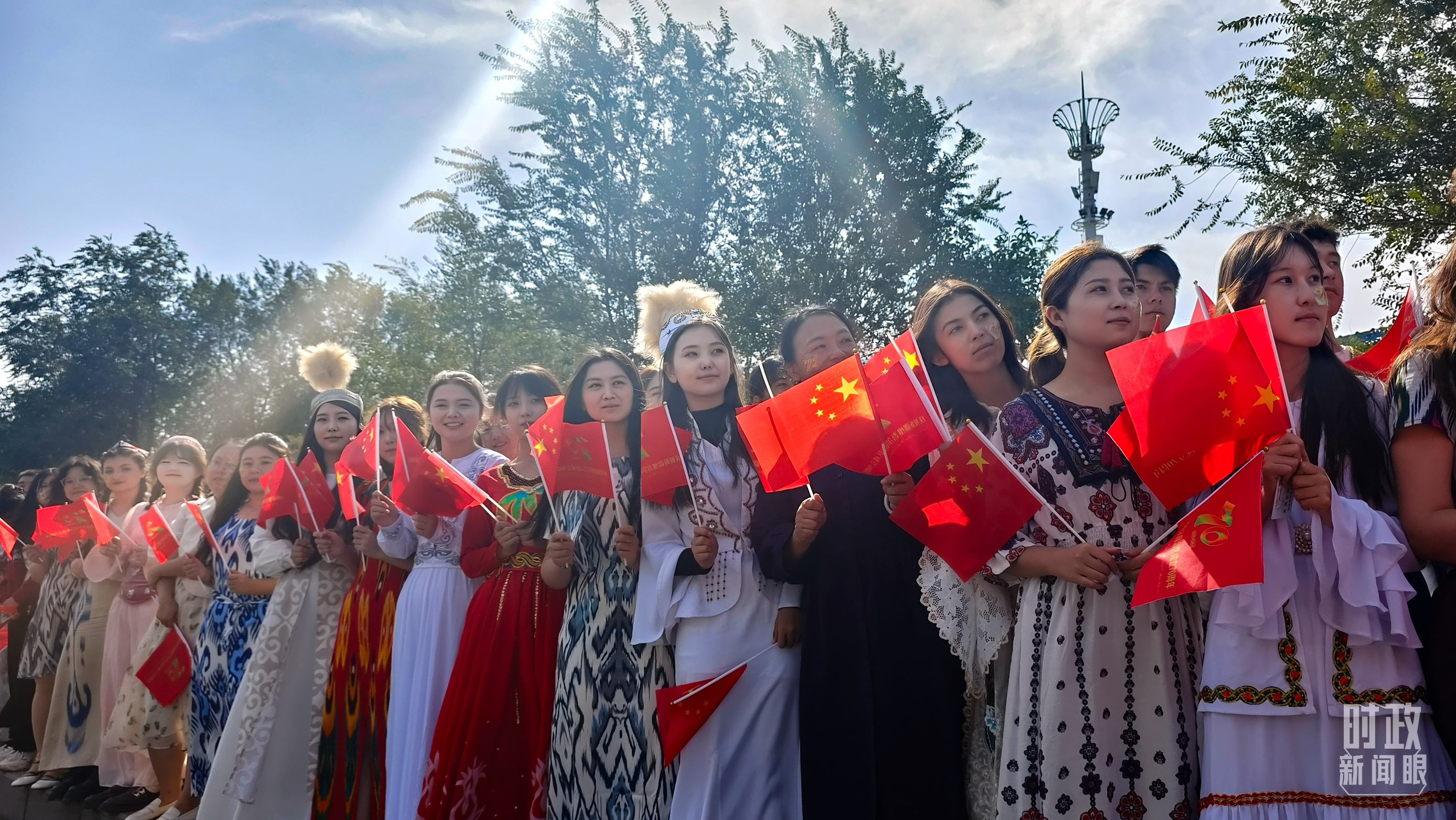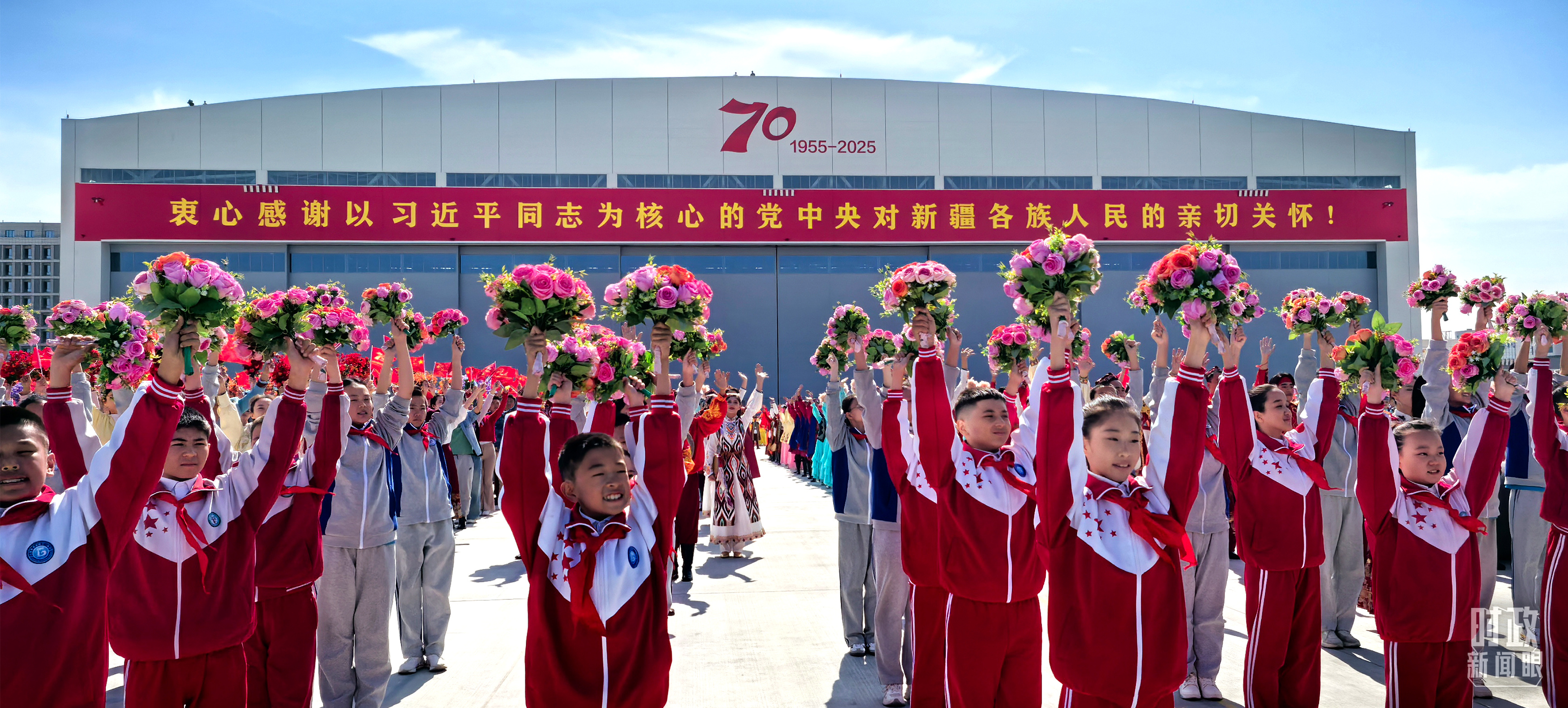 金秋時(shí)節(jié),晴空萬里。新疆各族群眾熱情迎接習(xí)近平總書記和中央代表團(tuán)的到來。