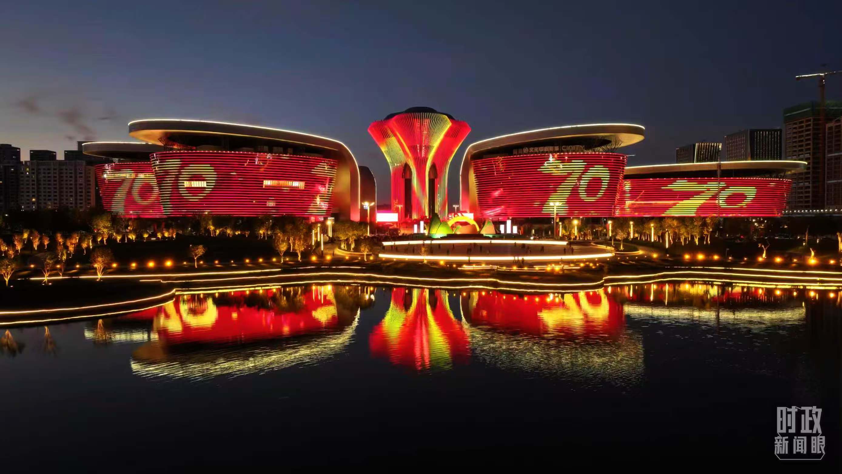 烏魯木齊文化中心夜景。(總臺(tái)記者阿爾曼拍攝)