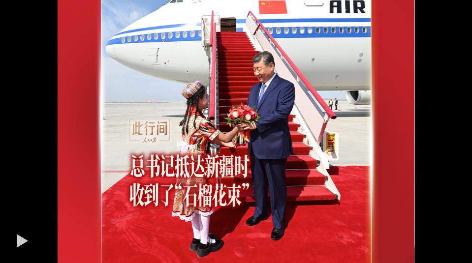 習(xí)近平率中央代表團(tuán)23日下午乘專機(jī)抵達(dá)烏魯木齊,出席新疆維吾爾自治區(qū)成立70周年慶祝活動(dòng),新疆各族群眾在機(jī)場熱烈歡迎??倳浭盏降幕ㄊ?,裝點(diǎn)了美麗的石榴。如今,“石榴籽”的妙喻為人熟知,民族團(tuán)結(jié)觀念深入人心。