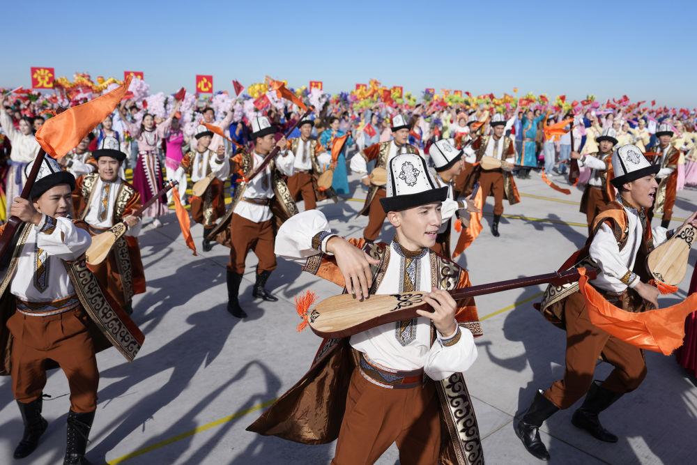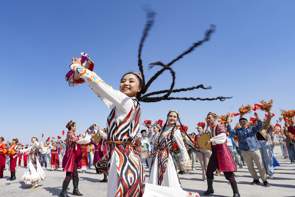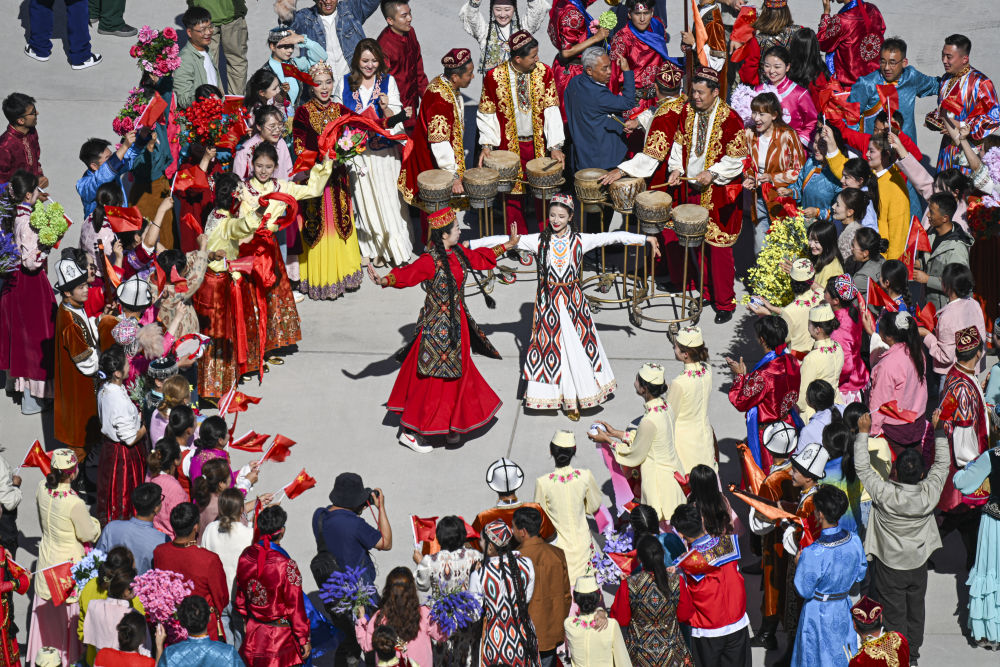 新華社記者的鏡頭里,各族兒女簇?fù)碓谝黄?,歡笑在一起;明艷的服飾、熱烈的歌舞,無(wú)不展現(xiàn)出團(tuán)結(jié)與奮進(jìn)的力量。