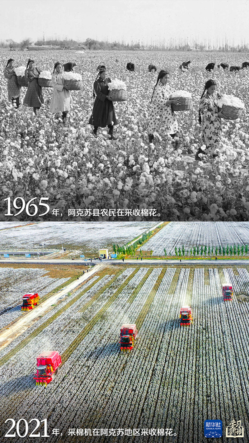 我們選取成就展上的一組照片,通過新舊對比,用鮮活的事實展現新疆取得的輝煌成就,一起感受翻天覆地的發(fā)展變化。