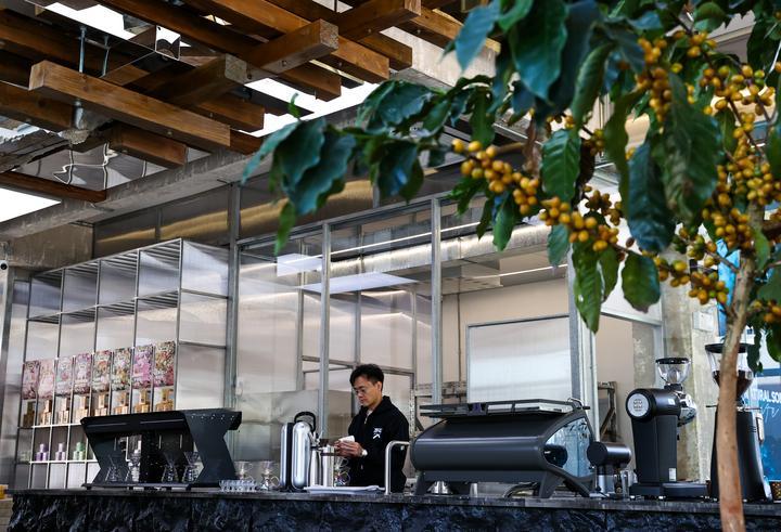 2025年12月10日,旅居云南的韓君瑋在位于昆明的南來盛咖啡店內(nèi)制作咖啡。韓君瑋自清華大學(xué)畢業(yè)后,已在咖啡行業(yè)耕耘十余年。2024年,他受聘成為云南一家老字號咖啡品牌的品牌總顧問,從此投身到云南咖啡的產(chǎn)品研發(fā)和品牌推廣工作中。一年多來,他每月都會來到昆明,短則幾天,長則數(shù)周,開啟了一種“半旅居、半工作”的生活模式?!霸颇巷L景優(yōu)美、氣候宜人,我很享受這樣的狀態(tài)?!表n君瑋說。