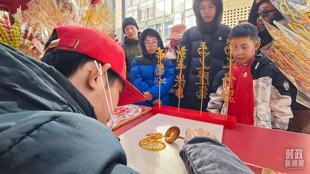 隆福寺街區(qū)新春市集上的特色年貨攤位。(總臺央視記者劉琦、曹亞星拍攝)