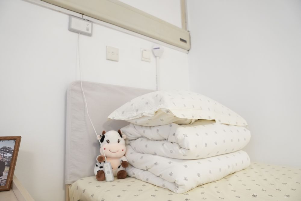 銀齡老年公寓的床位旁,都配有對講裝置(2月10日攝)。