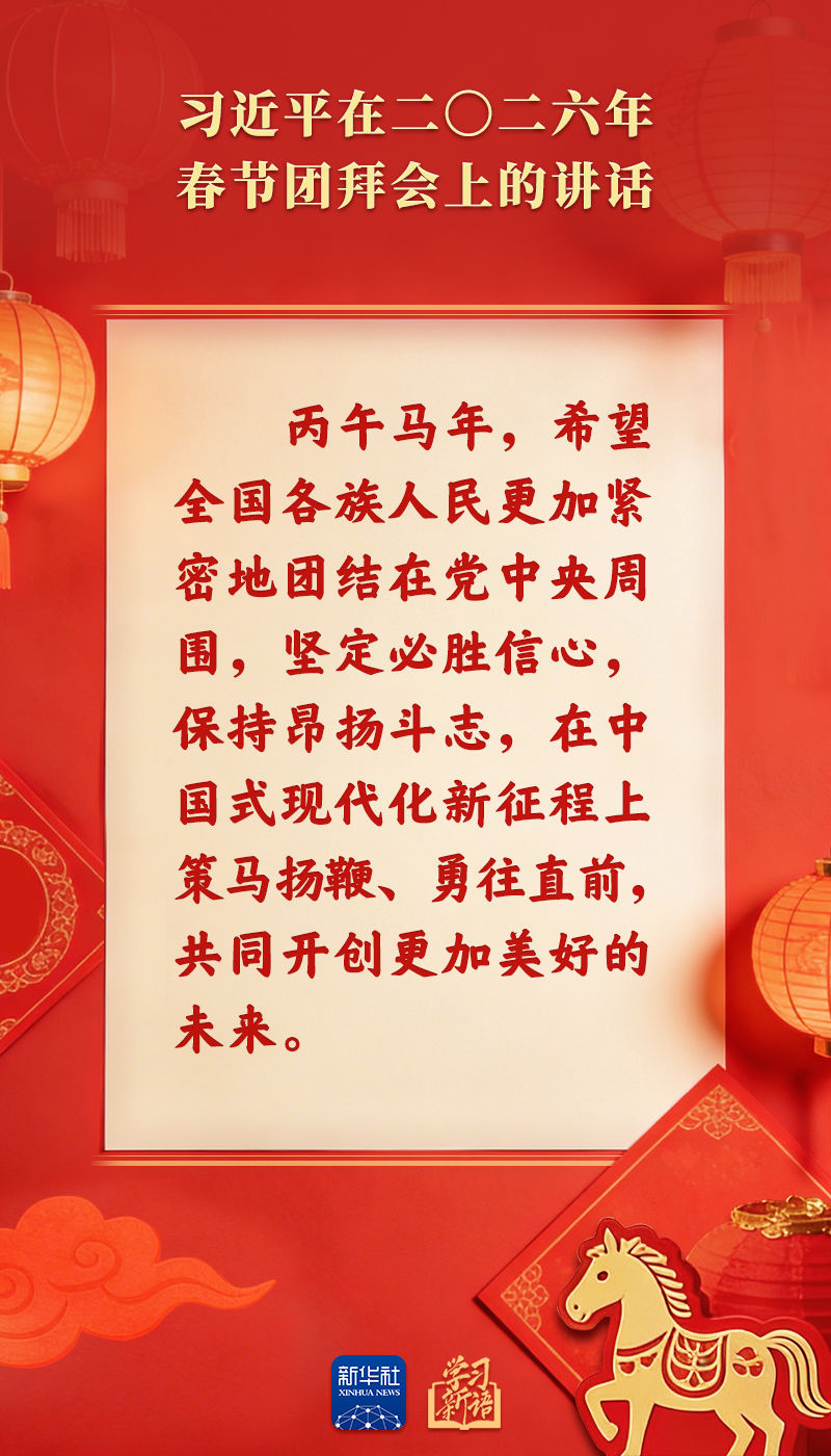 辭舊歲,賀新春。中共中央、國務(wù)院14日上午在人民大會(huì)堂舉行2026年春節(jié)團(tuán)拜會(huì)。習(xí)近平總書記發(fā)表講話,代表黨中央和國務(wù)院,向全國各族人民,向香港特別行政區(qū)同胞、澳門特別行政區(qū)同胞、臺(tái)灣同胞和海外僑胞拜年。