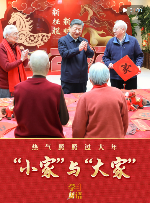 春節(jié),以家為圓心,億萬人的奔赴與守望,構(gòu)成了這個(gè)節(jié)日最重要的意義。每個(gè)“小家”熱氣騰騰,中國這個(gè)“大家”就蒸蒸日上。聆聽習(xí)近平總書記的新春祝福,開開心心、歡歡樂樂過好年!