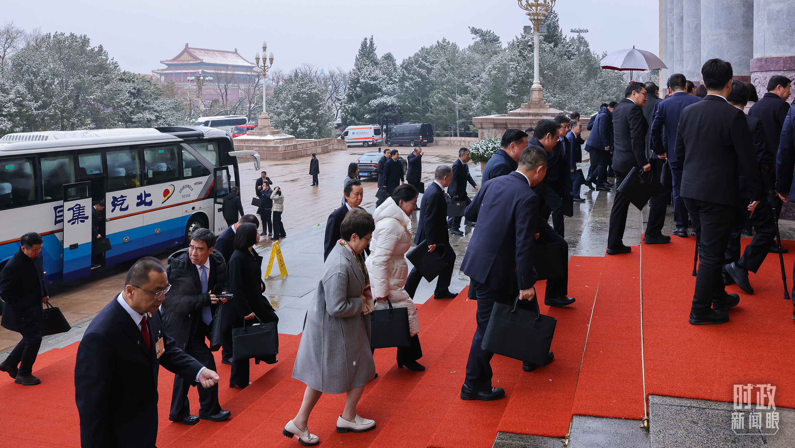 江蘇代表團(tuán)抵達(dá)人民大會(huì)堂。(總臺(tái)記者徐大為拍攝)