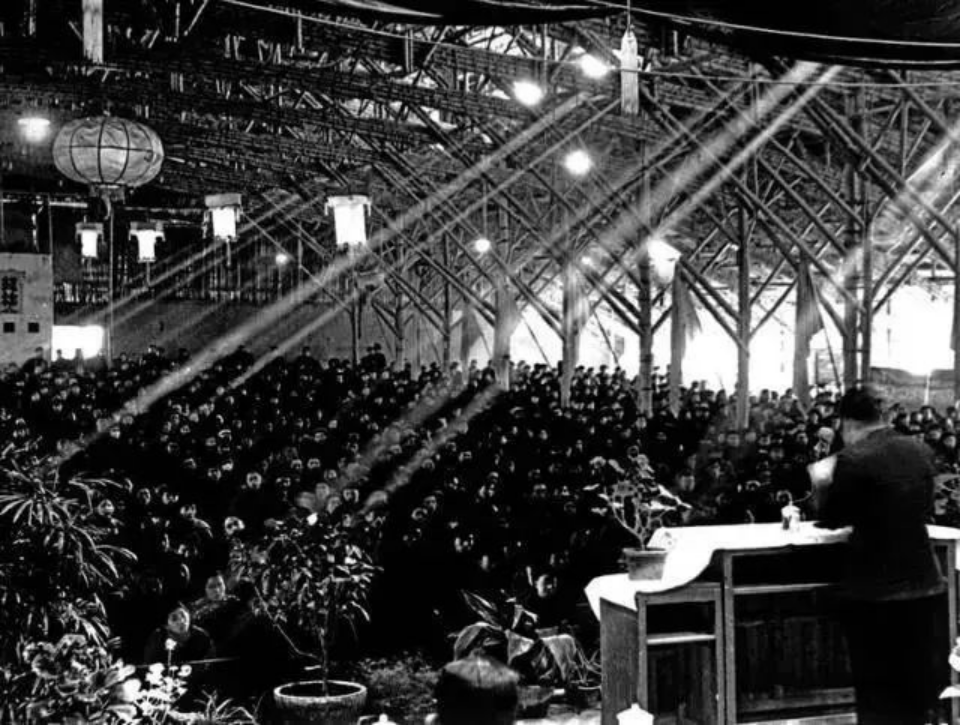 用竹篾草棚搭建的臨時(shí)大禮堂(圖片來(lái)源:西安交通大學(xué)新聞網(wǎng))