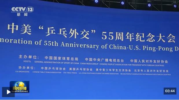 4月10日,習(xí)近平主席向中美“乒乓外交”55周年紀(jì)念大會暨中美青少年體育交流系列活動啟動儀式致賀信,高度評價“乒乓外交”的歷史和現(xiàn)實意義,鼓勵兩國各界人士特別是青年一代相知相親、攜手前行,為兩國關(guān)系注入強大動力和溫暖能量。習(xí)近平主席的賀信在中美各界人士中引發(fā)熱烈反響。